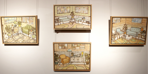 Motifs from museum interiors, taxidermy displays, and ambiguous or idealised landscapes emphasise how institutional settings and systems shape our understanding of the natural world. These references also call attention to the tension between preservation and loss that often sits within such spaces.